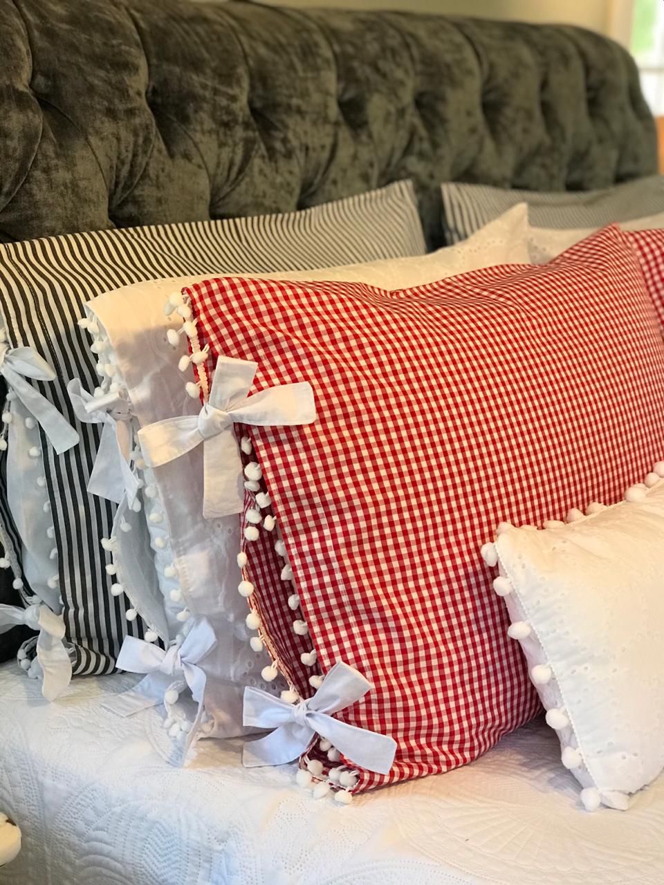 Fronha xadrez Vichy em tecido 100% algodão, fio tinto, toque macio.