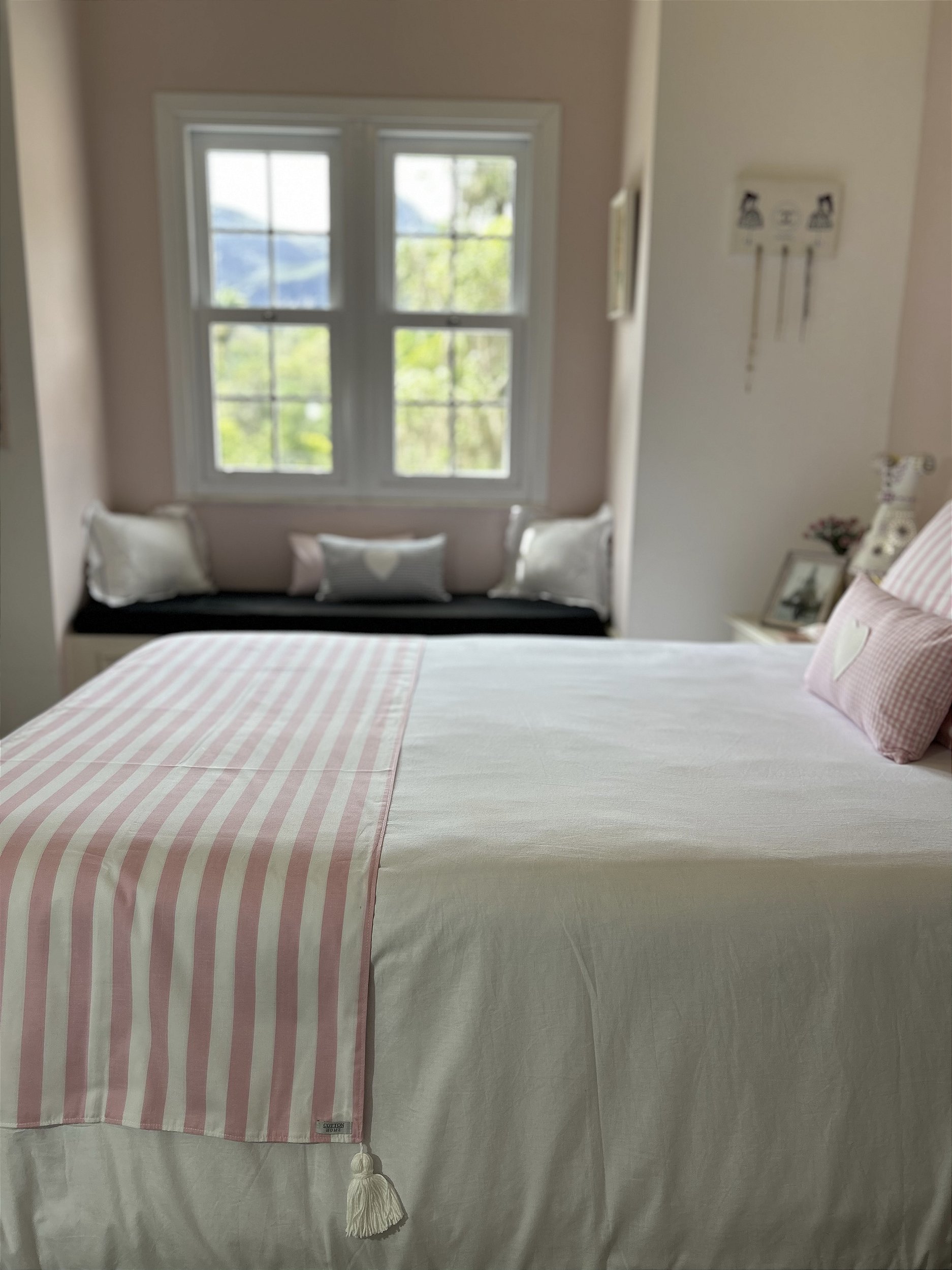 Peseira listrada em tecido duplo 100% algodão, com tassel nas pontas que dão um super charme na cama.